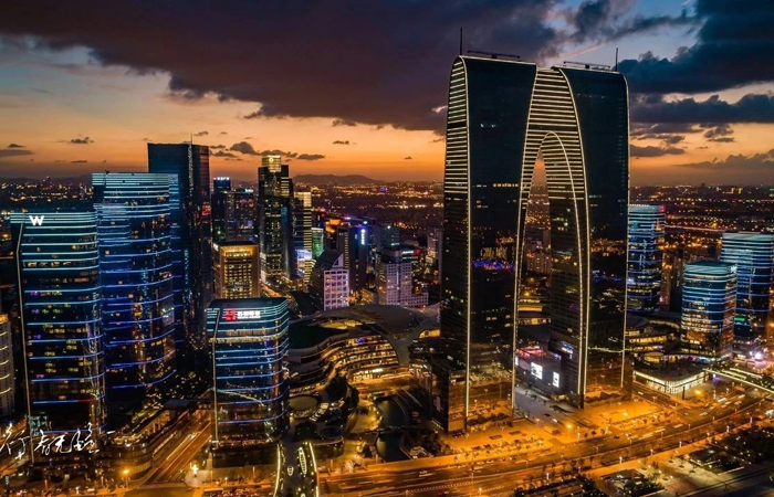 苏州工业园区金鸡湖城市发展有限公司整体开发的苏州中心项目,占地面积约16.7万平方米,位于苏州市域中CBD核心,紧邻金鸡湖5A级景区,连通轨交1号线和3号线。苏州中心项目以商业、办公、生活、旅游、文化等多元化产业为主导。
